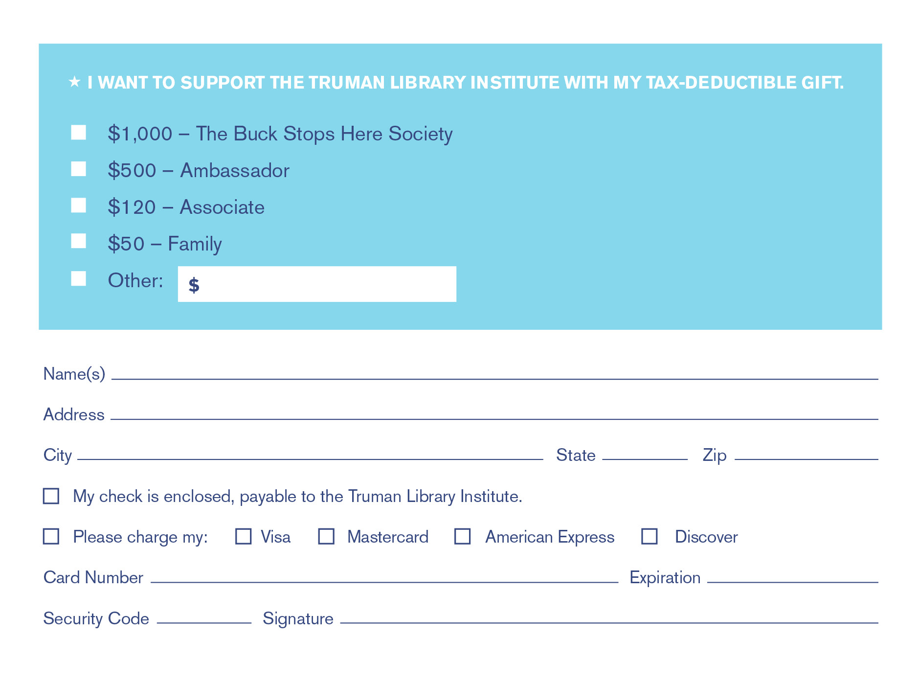 Various pieces for the Truman Presidential Library's annual fundraiser.